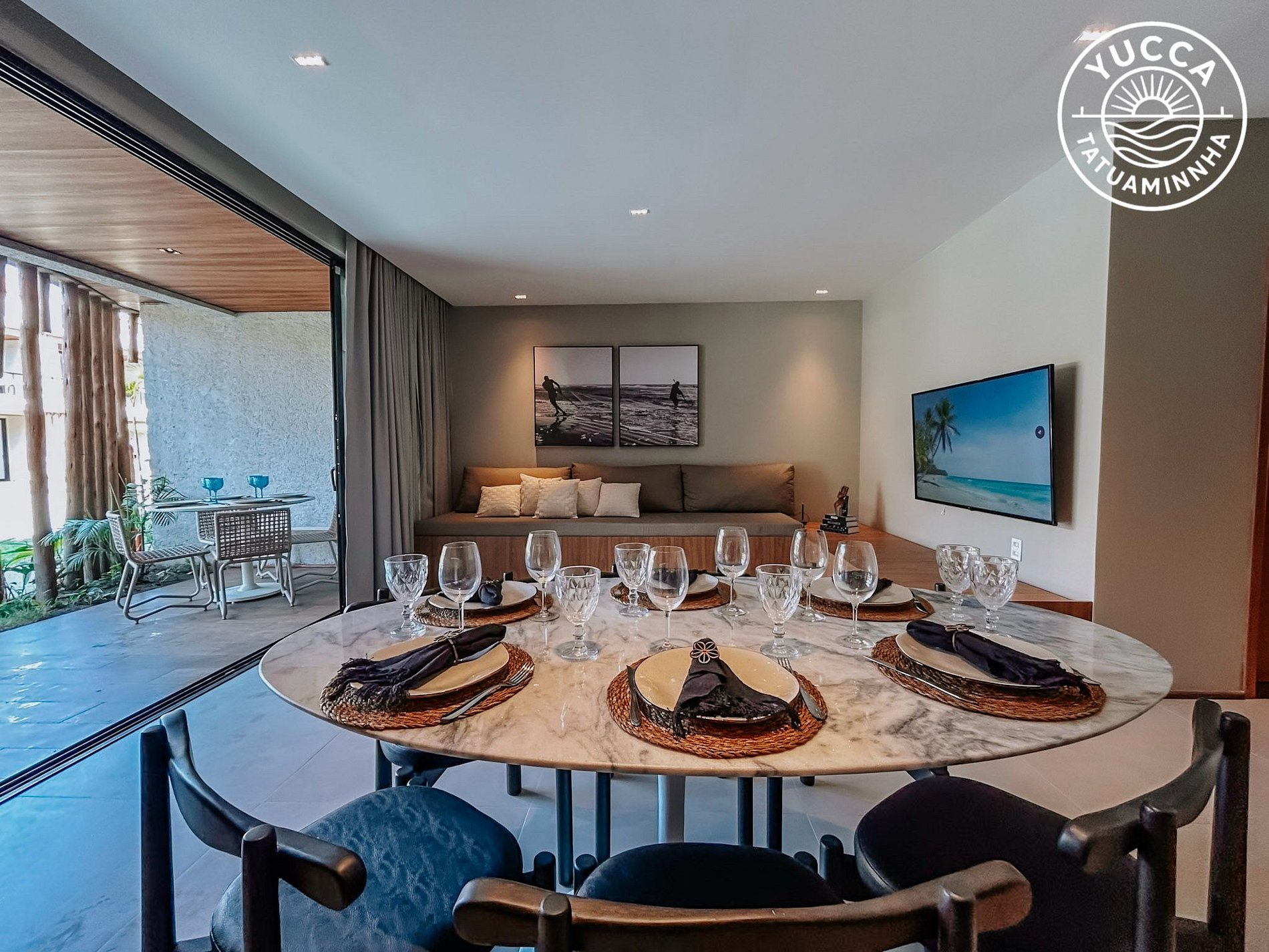Nosso apartamento se destaca pelo design exclusivo, que combina elementos naturais e contemporâneos para uma vivência luxuosa e tranquila, harmonizada com a paisagem local. A localização beira-mar, em meio a uma área de preservação ambiental, garante privacidade e um contato direto com a natureza. A infraestrutura de lazer completa, com piscina , beach bar e academia, e o compromisso com a sustentabilidade (energia solar) garantem uma estadia confortável, relaxante e consciente.