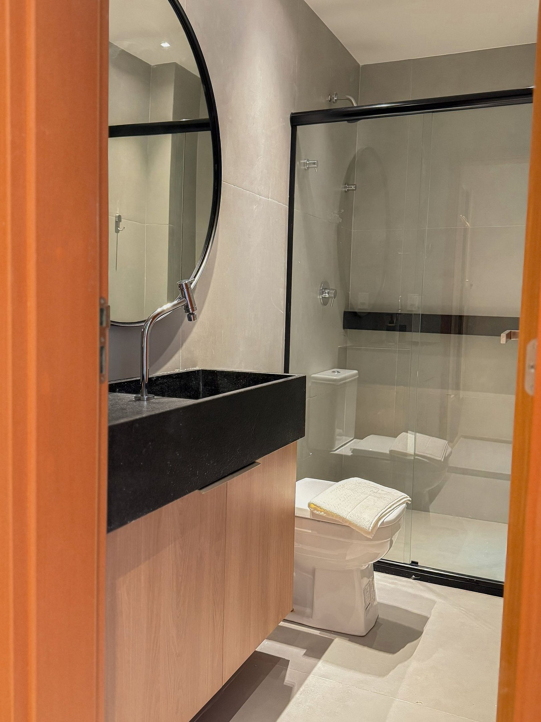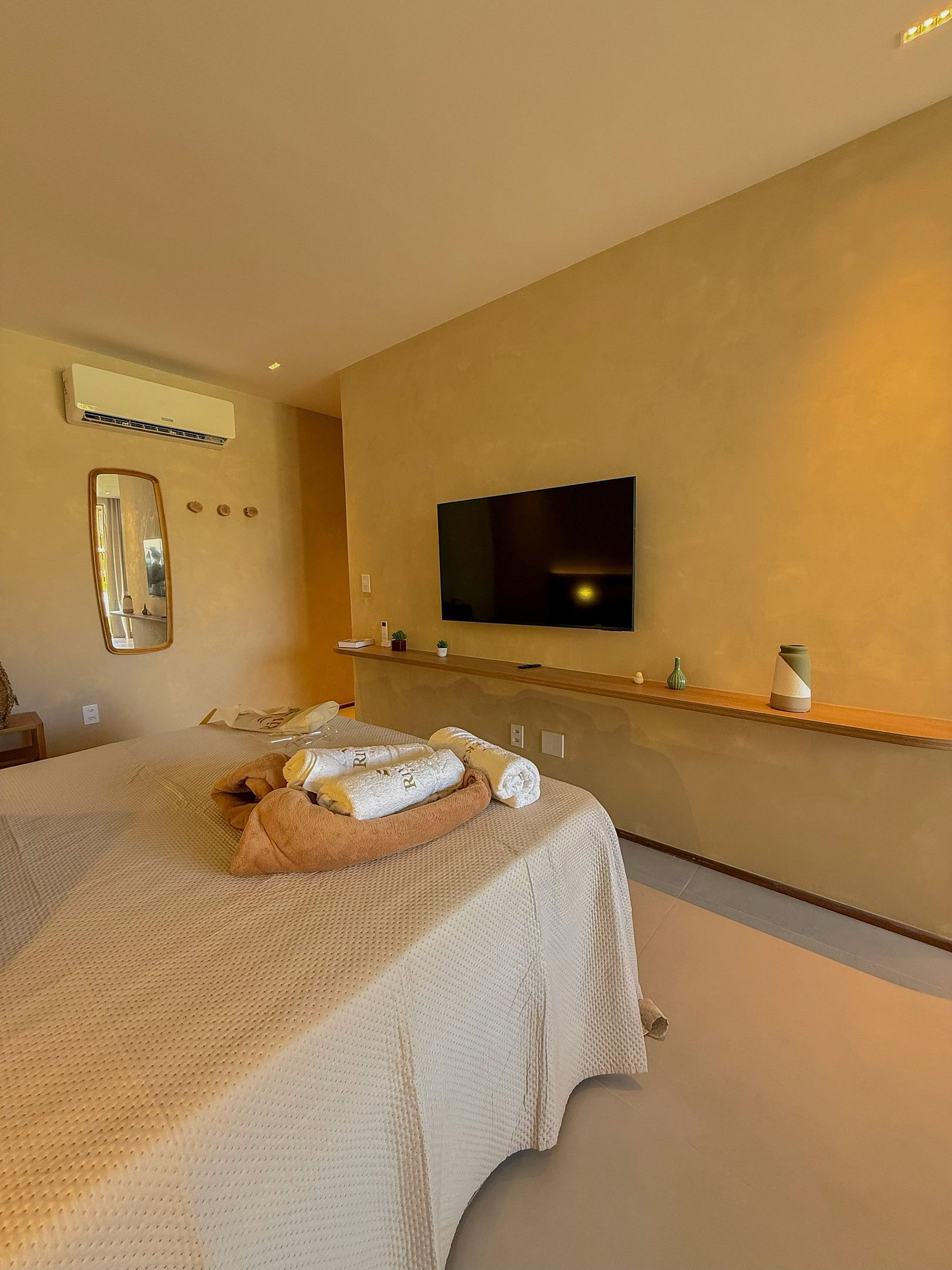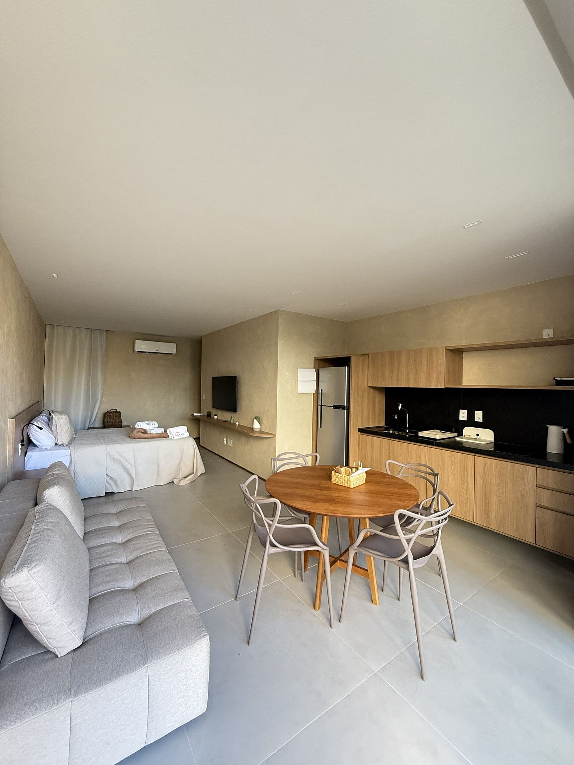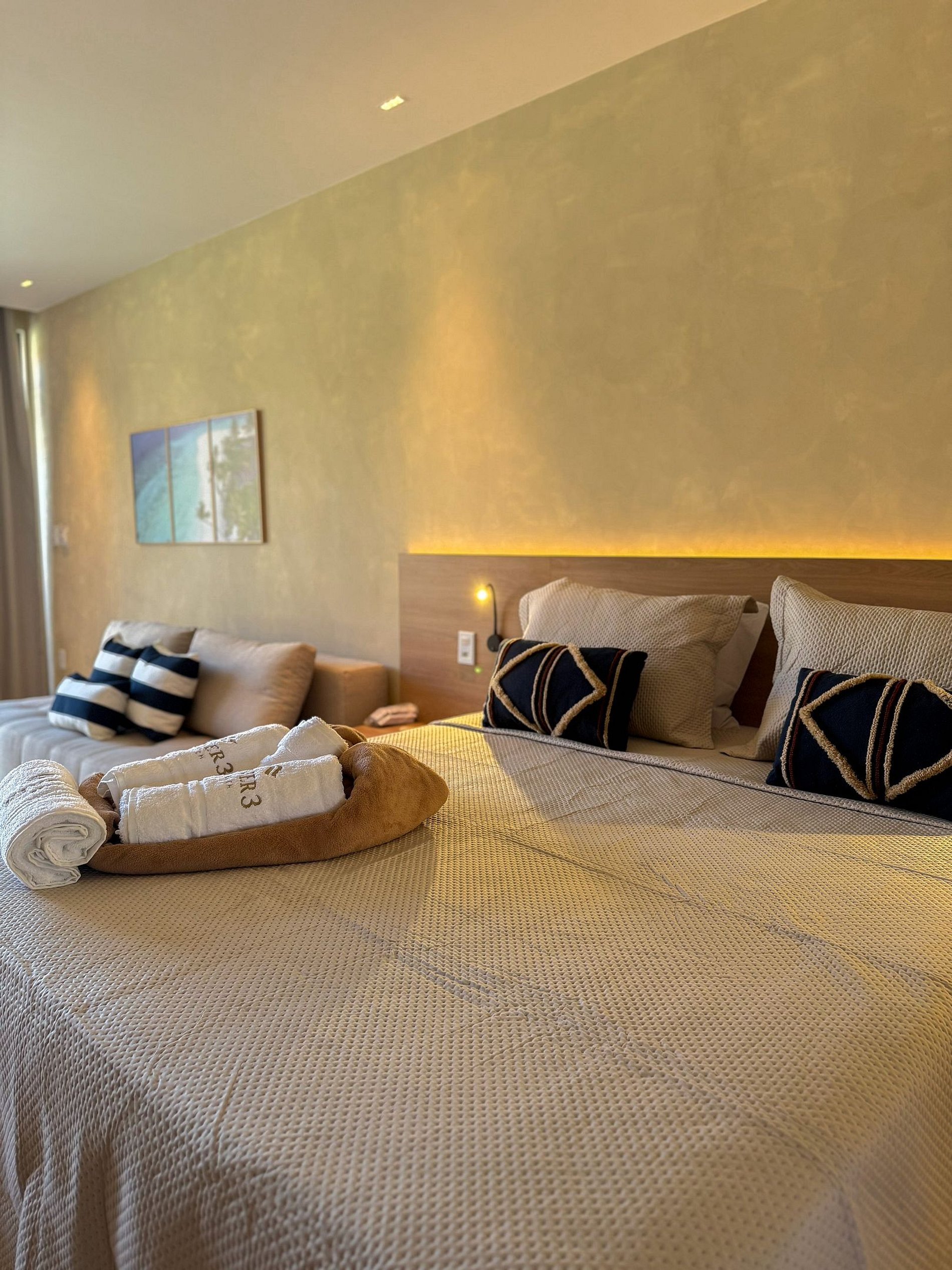 Nosso apartamento se destaca pelo design exclusivo, que combina elementos naturais e contemporâneos para uma vivência luxuosa e tranquila, harmonizada com a paisagem local. A localização beira-mar, em meio a uma área de preservação ambiental, garante privacidade e um contato direto com a natureza. A infraestrutura de lazer completa, com piscina , beach bar e academia, e o compromisso com a sustentabilidade (energia solar) garantem uma estadia confortável, relaxante e consciente.