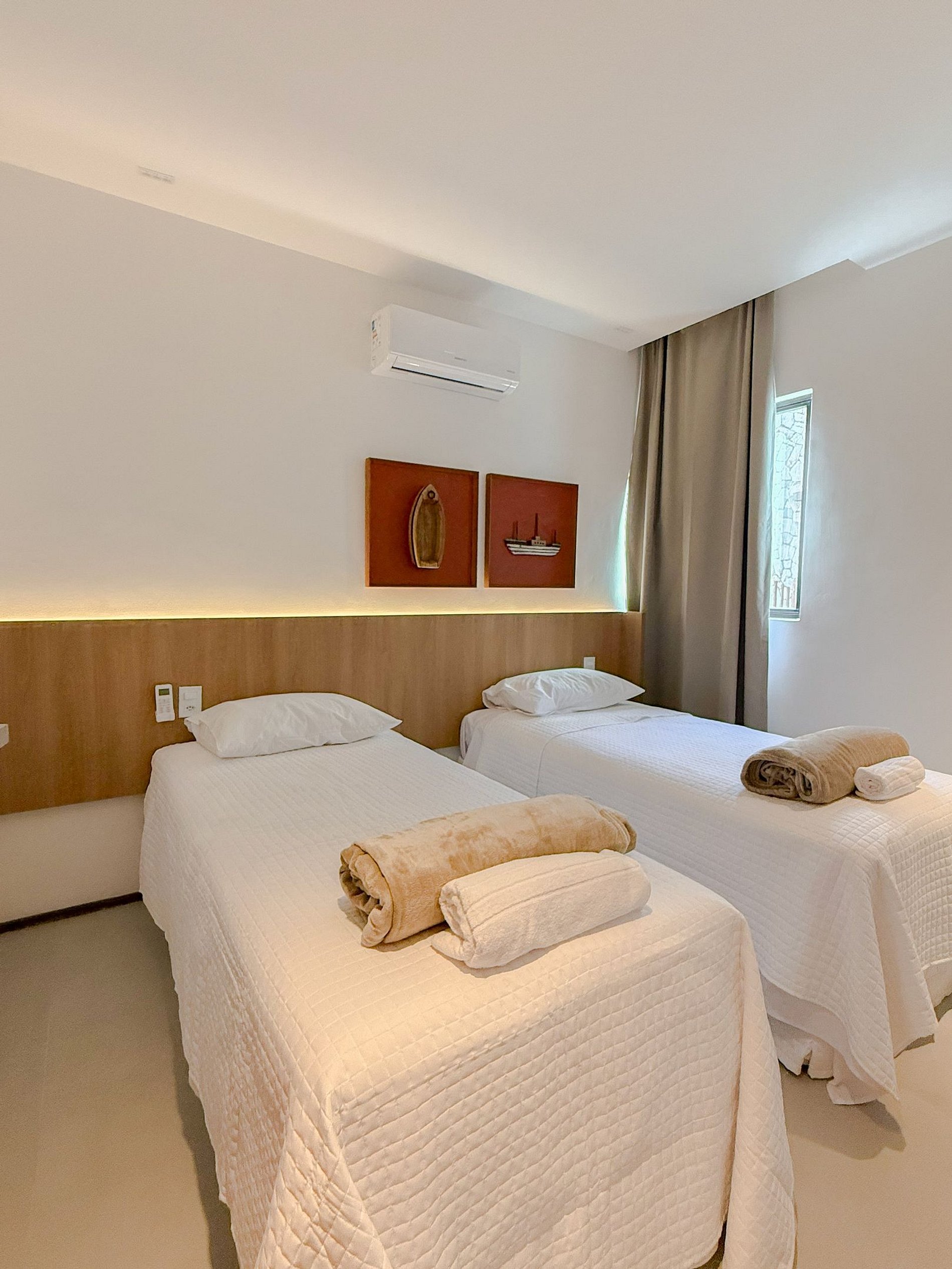 Nosso apartamento se destaca pelo design exclusivo, que combina elementos naturais e contemporâneos para uma vivência luxuosa e tranquila, harmonizada com a paisagem local. A localização beira-mar, em meio a uma área de preservação ambiental, garante privacidade e um contato direto com a natureza. A infraestrutura de lazer completa, com piscina , beach bar e academia, e o compromisso com a sustentabilidade (energia solar) garantem uma estadia confortável, relaxante e consciente.