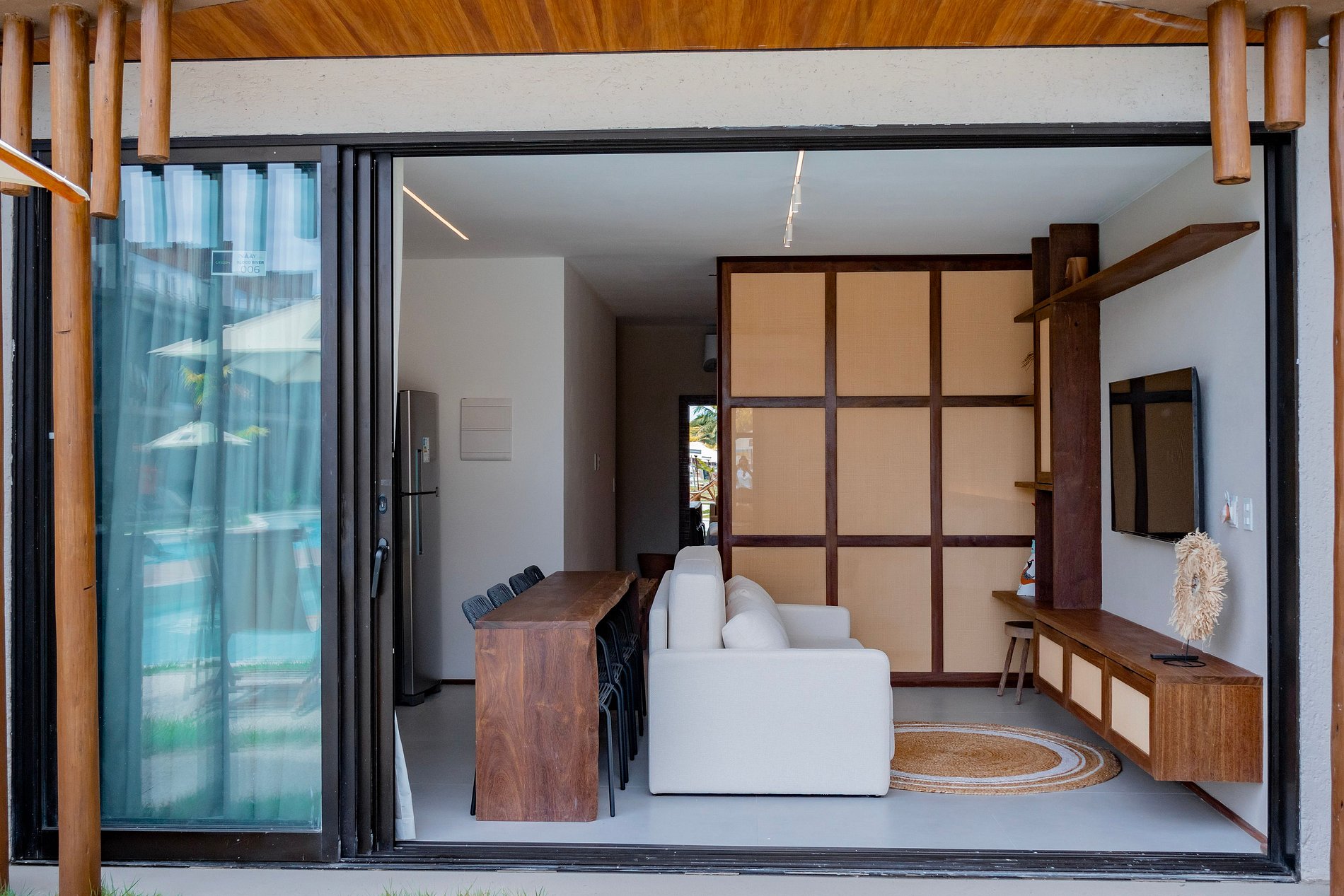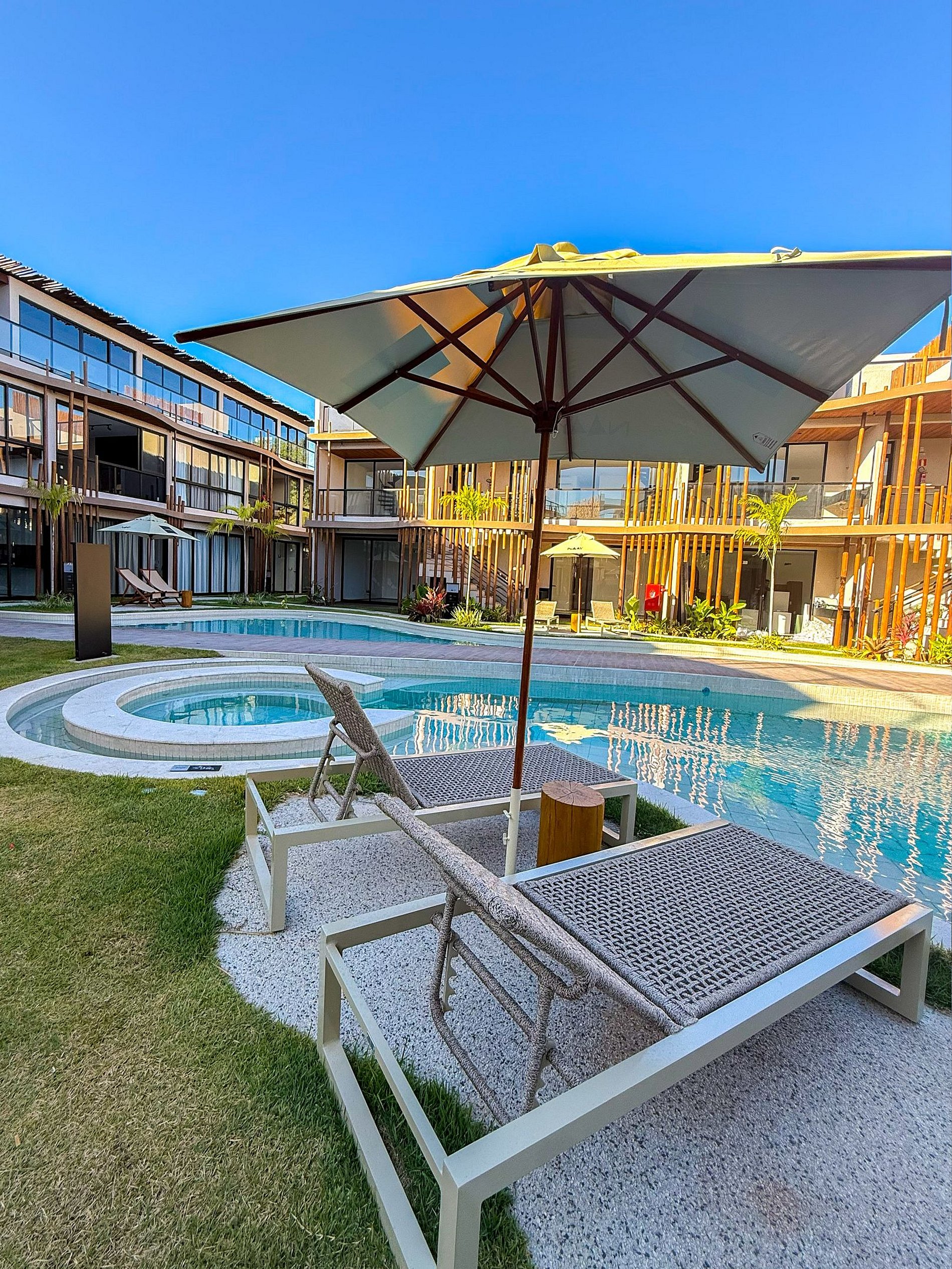Nosso apartamento se destaca pelo design exclusivo, que combina elementos naturais e contemporâneos para uma vivência luxuosa e tranquila, harmonizada com a paisagem local. A localização beira-mar, em meio a uma área de preservação ambiental, garante privacidade e um contato direto com a natureza. A infraestrutura de lazer completa, com piscina , beach bar e academia, e o compromisso com a sustentabilidade (energia solar) garantem uma estadia confortável, relaxante e consciente.