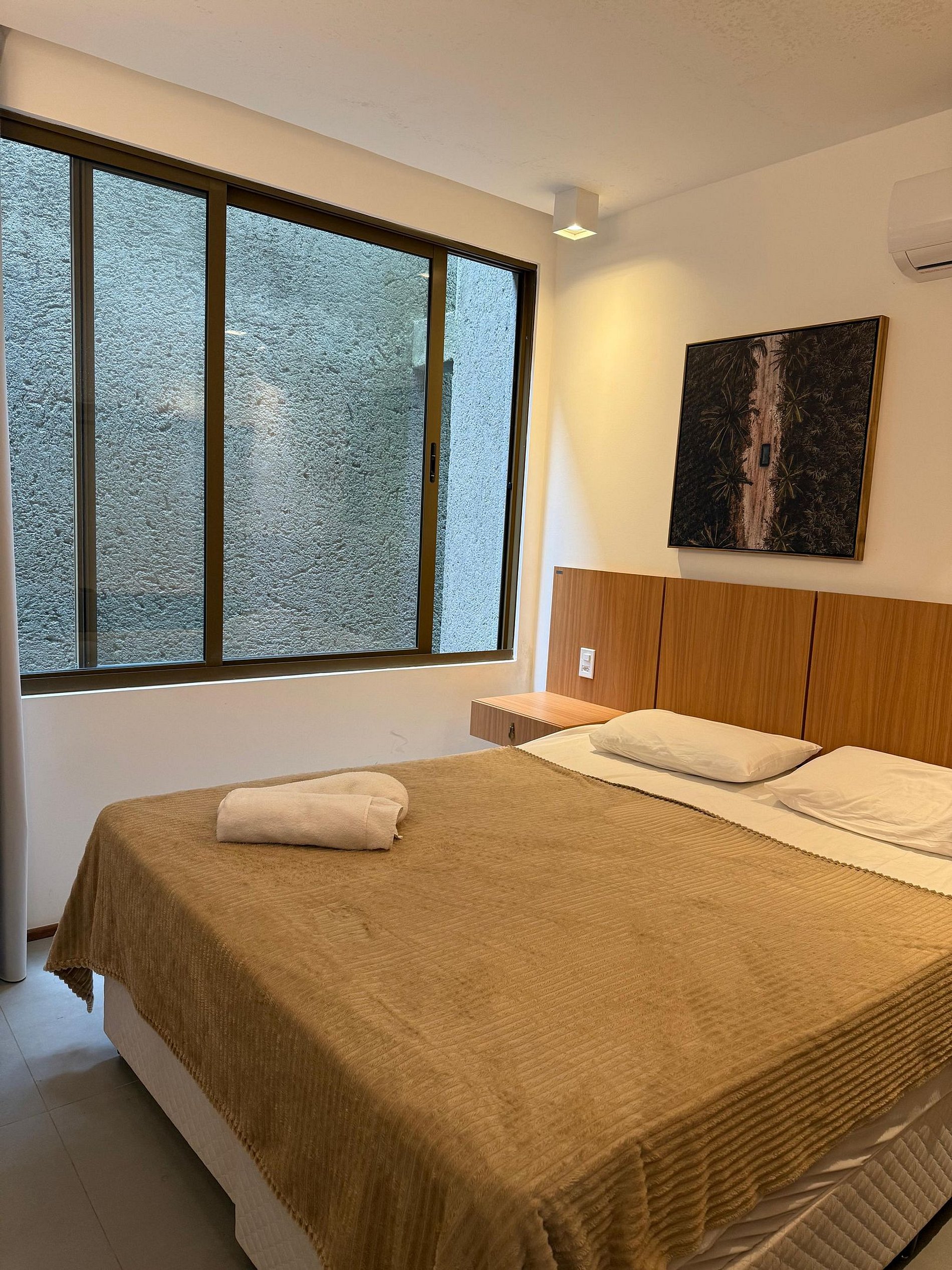 A localização privilegiada, a poucos passos da areia, proporciona a tranquilidade de um condomínio fechado com piscina e academia, além da conveniência de estar próximo a restaurantes, mercados e às belezas naturais.