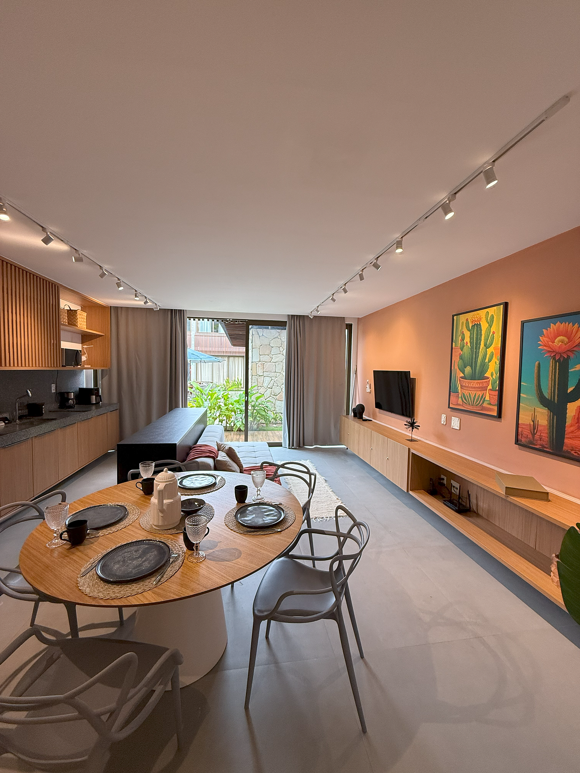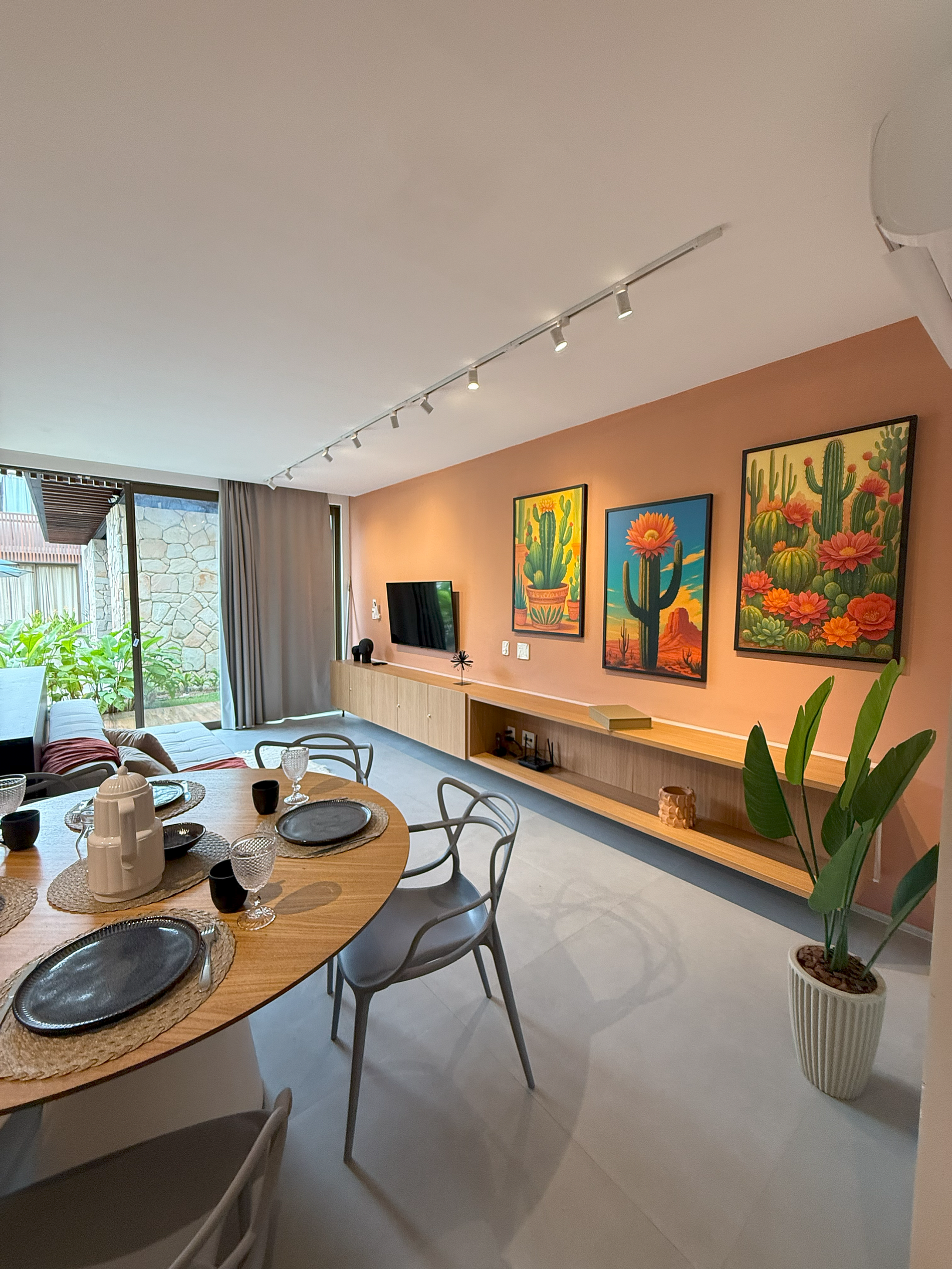 A localização privilegiada, a poucos passos da areia, proporciona a tranquilidade de um condomínio fechado com piscina e academia, além da conveniência de estar próximo a restaurantes, mercados e às belezas naturais.