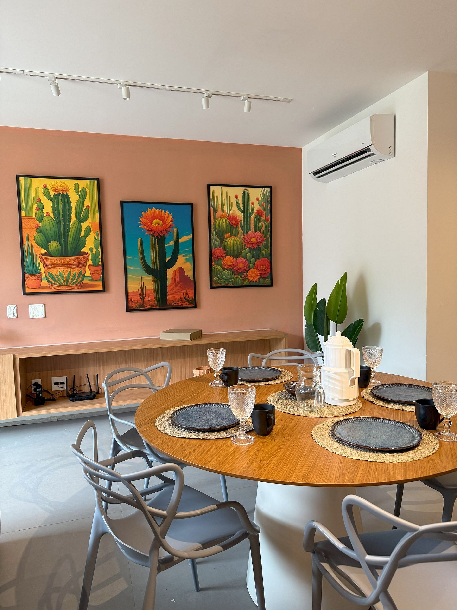 O imóvel é amplo, arejado e decorado com charme, oferecendo todos os itens essenciais para uma estadia aconchegante. Os hóspedes podem desfrutar de ambientes planejados para o descanso, cozinha equipada e área de estar confortável.